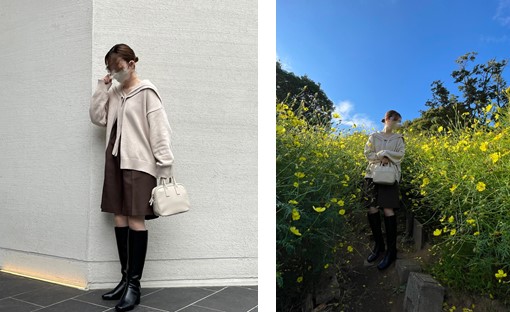 秋の紅葉を見に行ったり、冬のイルミネーションを見に行ったりとできるコーデです。